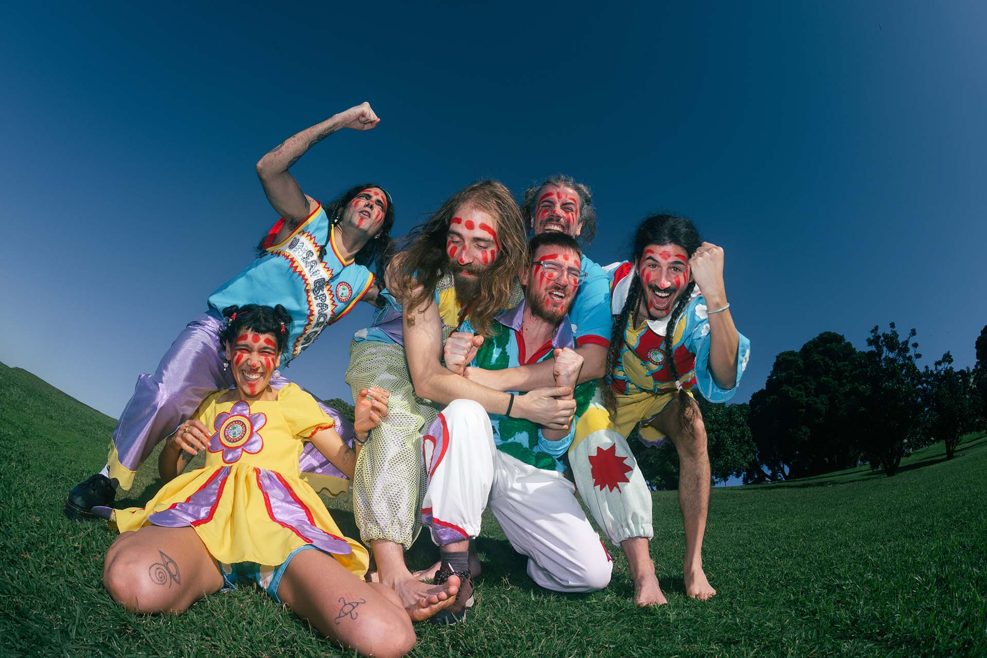 este coletivo de guimarães insiste em transformar o protesto existencial numa celebração caótica, misturando humor, energia, cor, absurdo e intimidade. o palco não é apenas um lugar de atuação: é um espaço de embate, onde o espetáculo ao vivo se transforma numa experiência alucinante, longe de ser apenas “mais um concerto”.